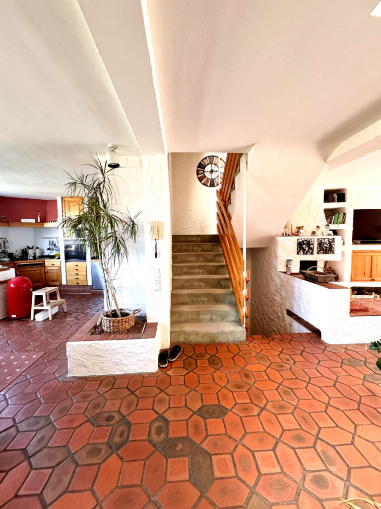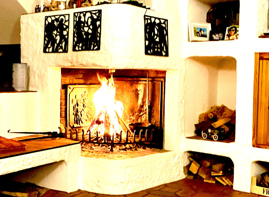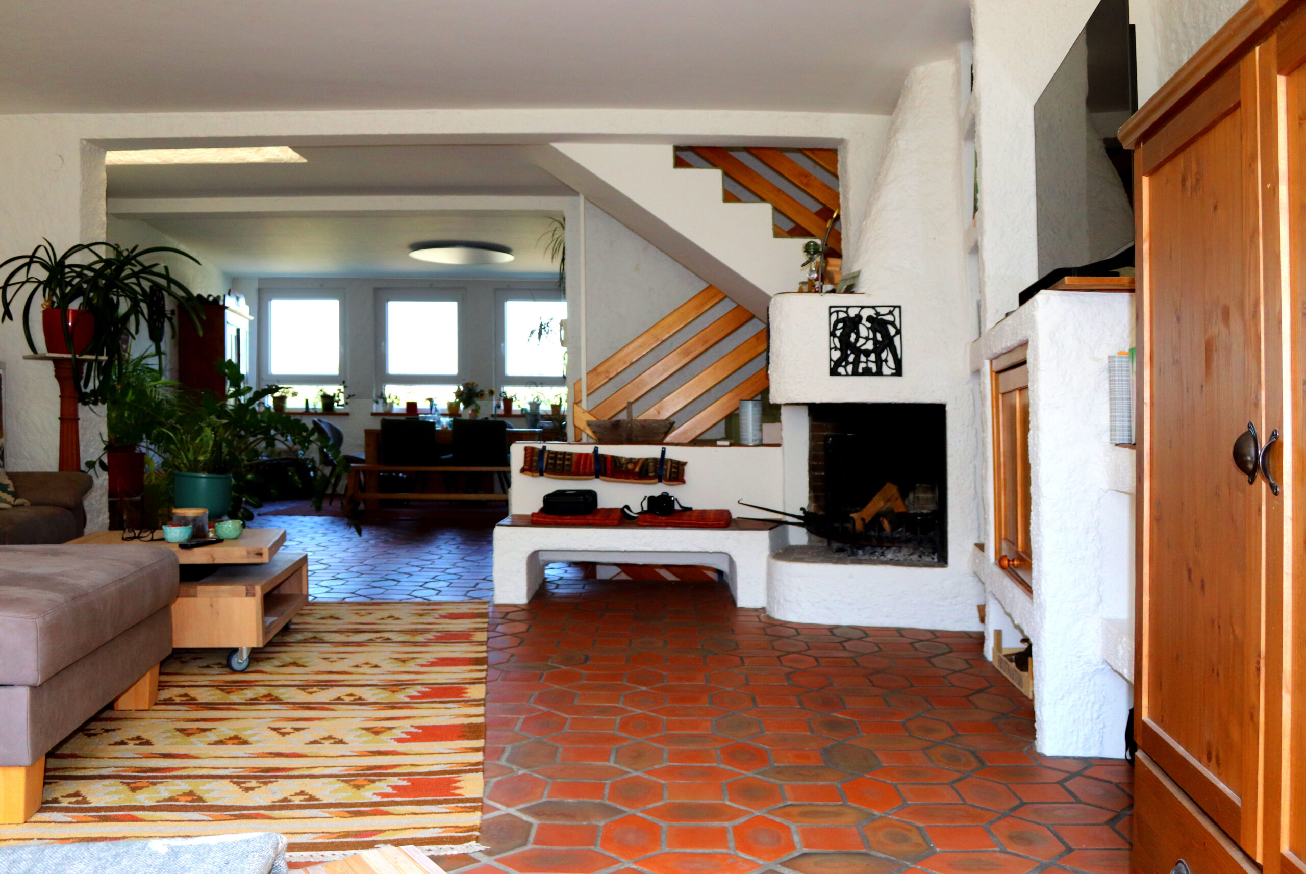 Der offene Kamin im Wohnbereich ergänzt dieses System ideal: